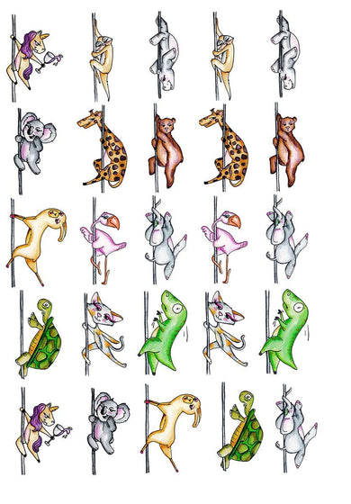 Stripper Animals - Ceramic Decals- Enamel Decal - Fusible Decal - Glass Fusing Decal ~ Waterslide Decal - 44926