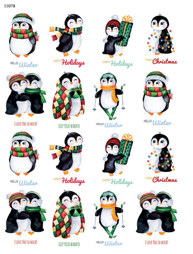 Fun Loving Penguins - Ceramic Decals- Enamel Decal - Fusible Decal - Glass Fusing Decal ~ Waterslide Decal - 11078