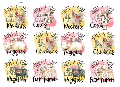 Just A Girl Who Loves Peckers Chickens Piggies Cows Farm  -   Ceramic Decals- Enamel Decal -  Glass Fusing Decal ~ Waterslide Decal - 57566