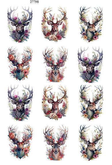 Floral Majestic Deer - Ceramic Decals- Enamel Decal - Fusible Decal - Glass Fusing Decal ~ Waterslide Decal - 27798