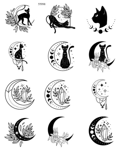 Mystical Cats - Ceramic Decals- Enamel Decal - Fusible Decal - Glass Fusing Decal ~ Waterslide Decal - 55998