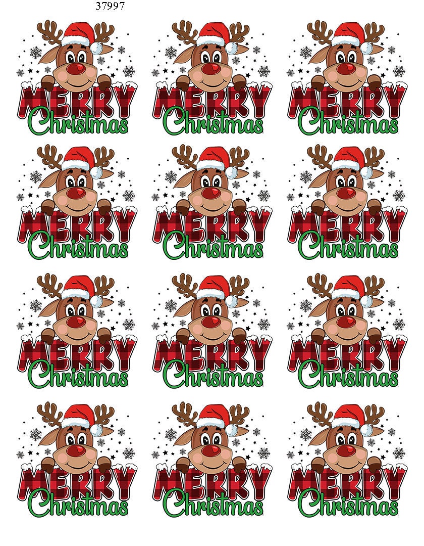 Merry Christmas Reindeer - Christmas - Ceramic Decals- Enamel Decal - Fusible Decal - Glass Fusing Decal ~ Waterslide Decal - 37997