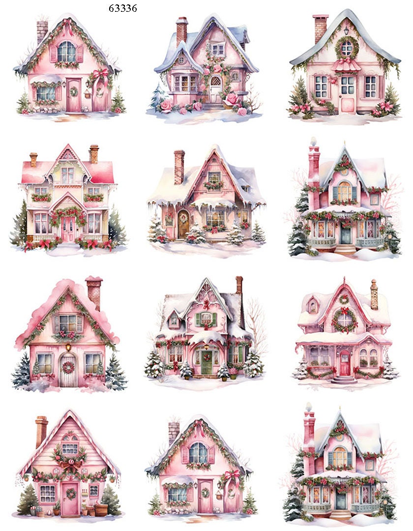 - Pink Christmas Houses - Christmas - Ceramic Decals- Enamel Decal - Fusible Decal - Glass Fusing Decal ~ Waterslide Decal - 63336