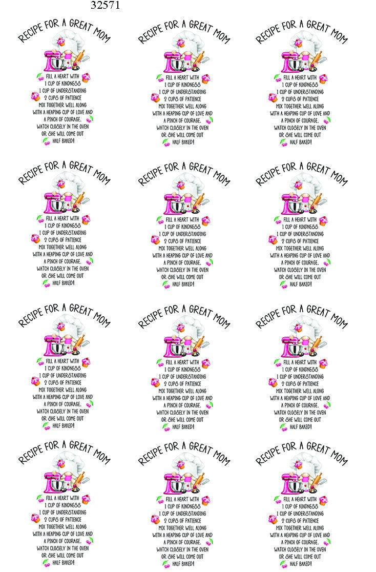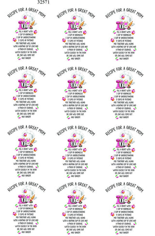 Recipe for a Great Mom - Mother's Day - Ceramic Decals- Enamel Decal - Fusible Decal - Glass Fusing Decal ~ Waterslide Decal - 32571