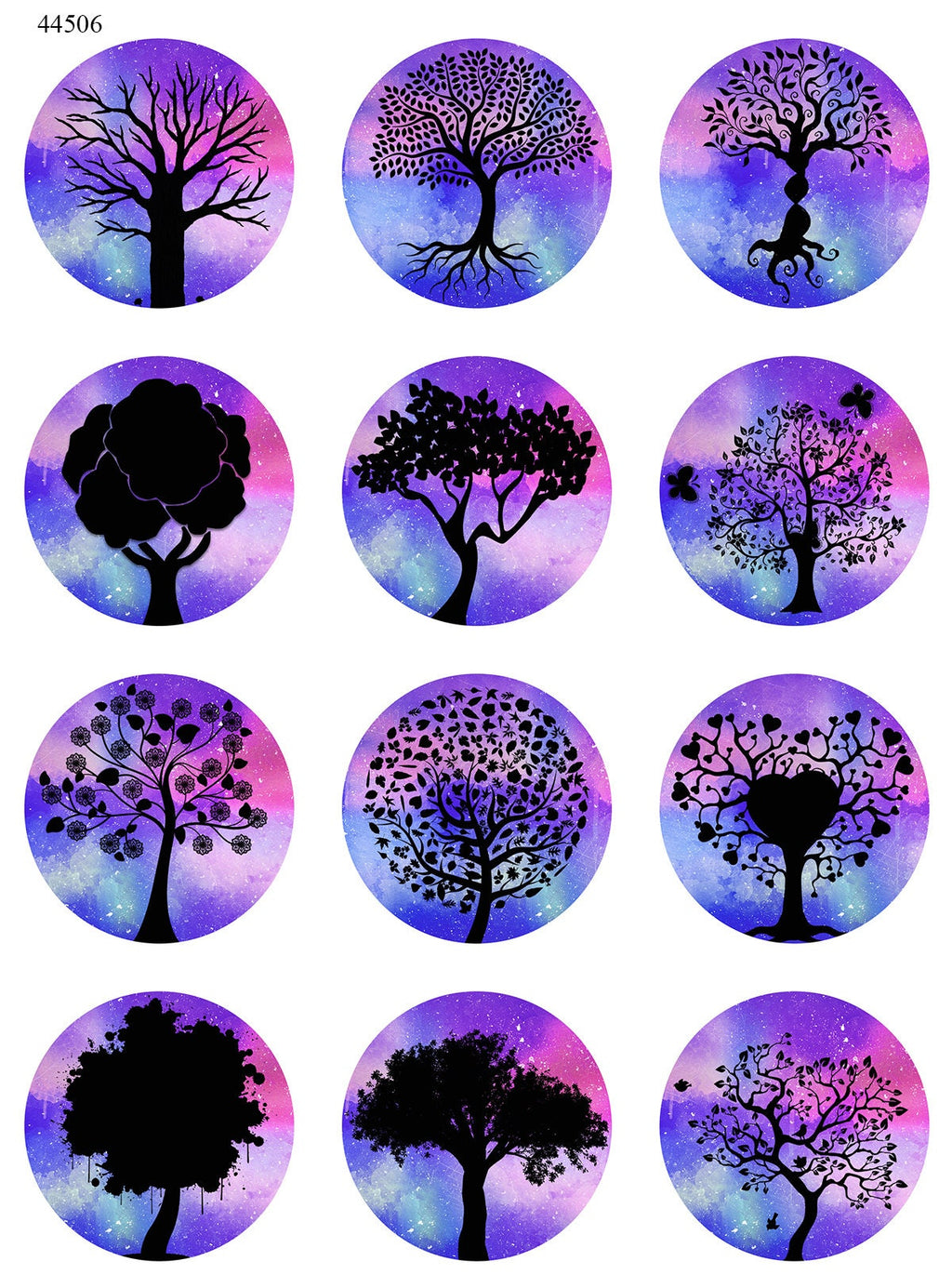 Colorful Tree Silhouettes - Ceramic Decals- Enamel Decal - Fusible Decal - Glass Fusing Decal ~ Waterslide Decal - 44506