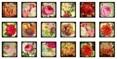 Roses and Flowers In Square Frames - Ceramic Decals- Enamel Decal - Fusible Decal - Glass Fusing Decal ~ Waterslide Decal - 488678