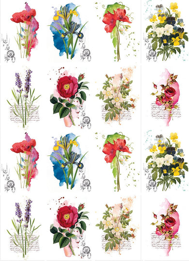 Watercolor Flowers  -  Ceramic Decals- Enamel Decal - Fusible Decal - Glass Fusing Decal ~ Waterslide Decal - 98551