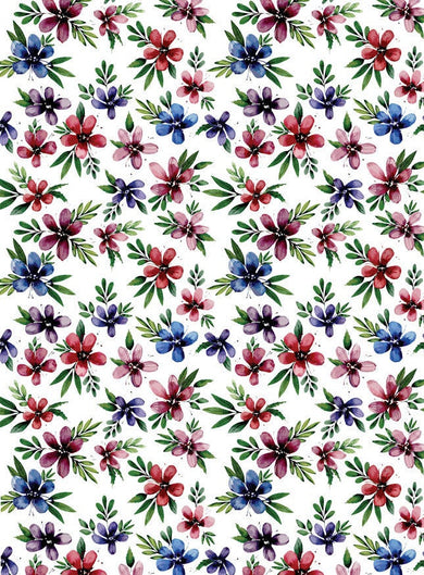Pink and Blue Flowers Seamless Sheet - Ceramic Decals- Enamel Decal - Fusible Decal - Glass Fusing Decal ~ Waterslide Decal - 10699
