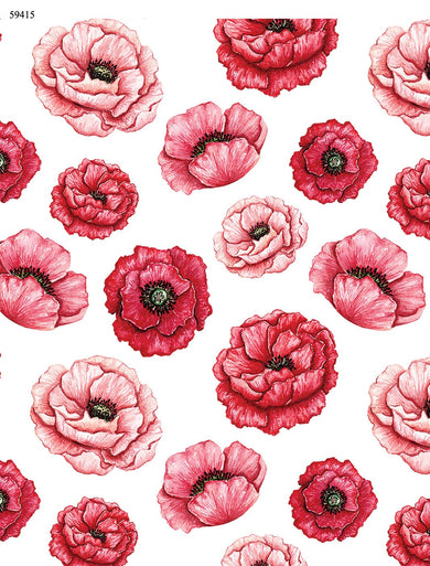 Seamless Pink and Red Poppies -  Ceramic Decals- Enamel Decal - Fusible Decal - Glass Fusing Decal ~ Waterslide Decal - 59415