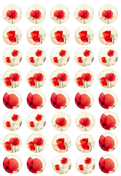 Red Poppy Circle Buttons - Ceramic Decals- Enamel Decal - Fusible Decal - Glass Fusing Decal ~ Waterslide Decal - 85138
