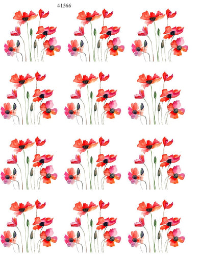 Poppies - Ceramic Decals- Enamel Decal - Fusible Decal - Glass Fusing Decal ~ Waterslide Decal - 41566
