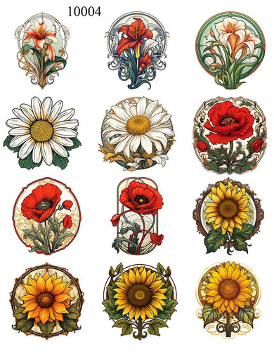 Floral Poppy, Sunflower and Daisy Art - Ceramic Decals- Enamel Decal - Fusible Decal - Glass Fusing Decal ~ Waterslide Decal - 10004
