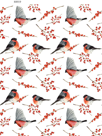 Red Robins and Berries - Ceramic Decals- Enamel Decal - Fusible Decal - Glass Fusing Decal ~ Waterslide Decal - 88919